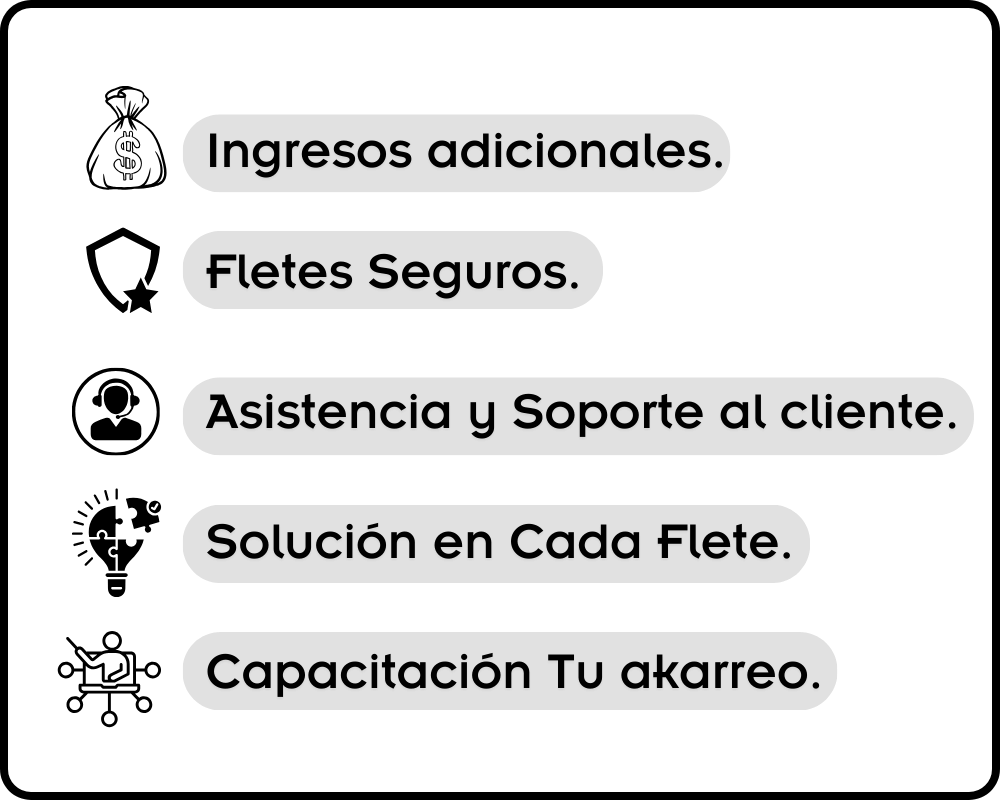 Tu akarreo cobrará una tasa de servicio del 10% + IVA e impuestos por cada flete realizado por motivo al trabajo que Tu akarreo implementa para adquirir y encontrar los mejores servicios para ti, es el único cobro que se hará y no se aplicarán más cargos a tu flete.